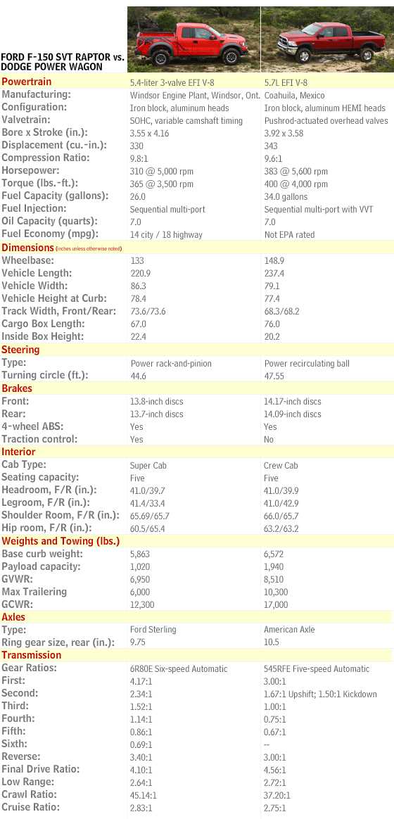 Сравнение Ford F-150 SVT Raptor vs. Dodge Ram Power Wagon