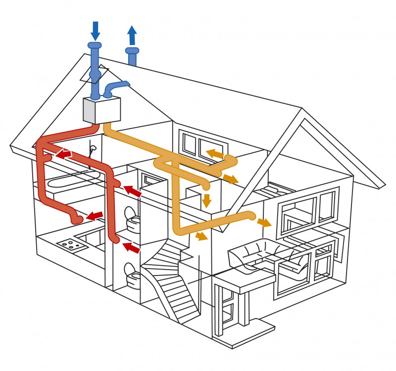 Устройство сети воздушного отопления из термоизолированных воздуховодов PIR