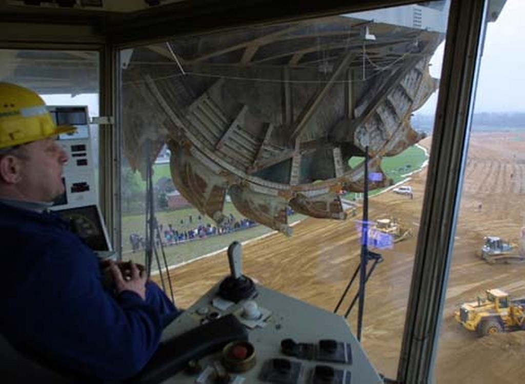 А вот перемещение Bagger 288 собирало днём и ночью сотни зевак. К описанию машины нужно добавить, что одновременно на нём работает смена численностью в четыре человека. Всего смен три, так что колосс работает круглосуточно.