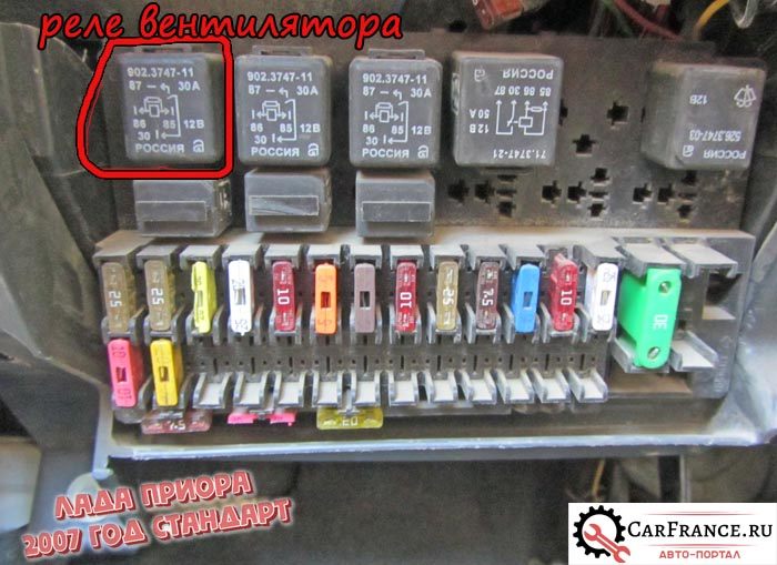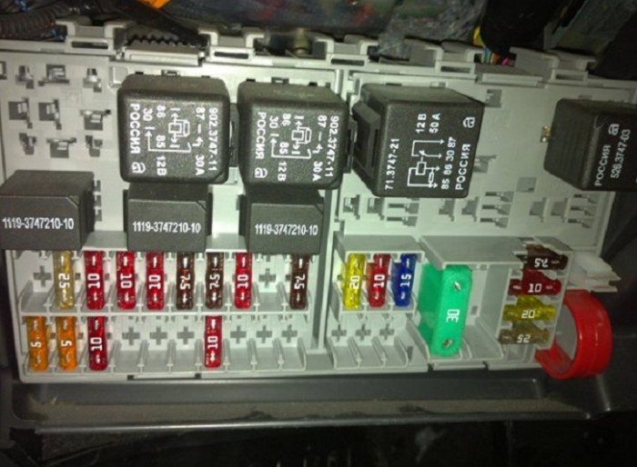 Расшифровка реле в монтажном блоке Lada Priora в версии «Люкс Плюс»: