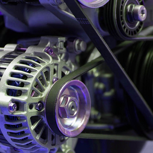 Особенности расположения генератора на картере в подкапотном пространстве предполагает наличие шкивов на самом генераторе и коленчатом валу, соединённых ременной передачей.