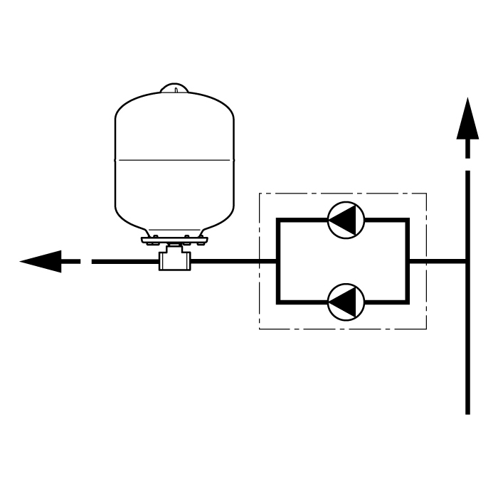 Такие насосные станции устанавливаются там, где присутствует большое водопотребление. Как правило, один из насосов на таких станциях работает постоянно. На повысительной насосной станции гидроаккумулятор служит для уменьшения скачков давления во время включения дополнительных насосов и для возмещения небольших водоразборов.
