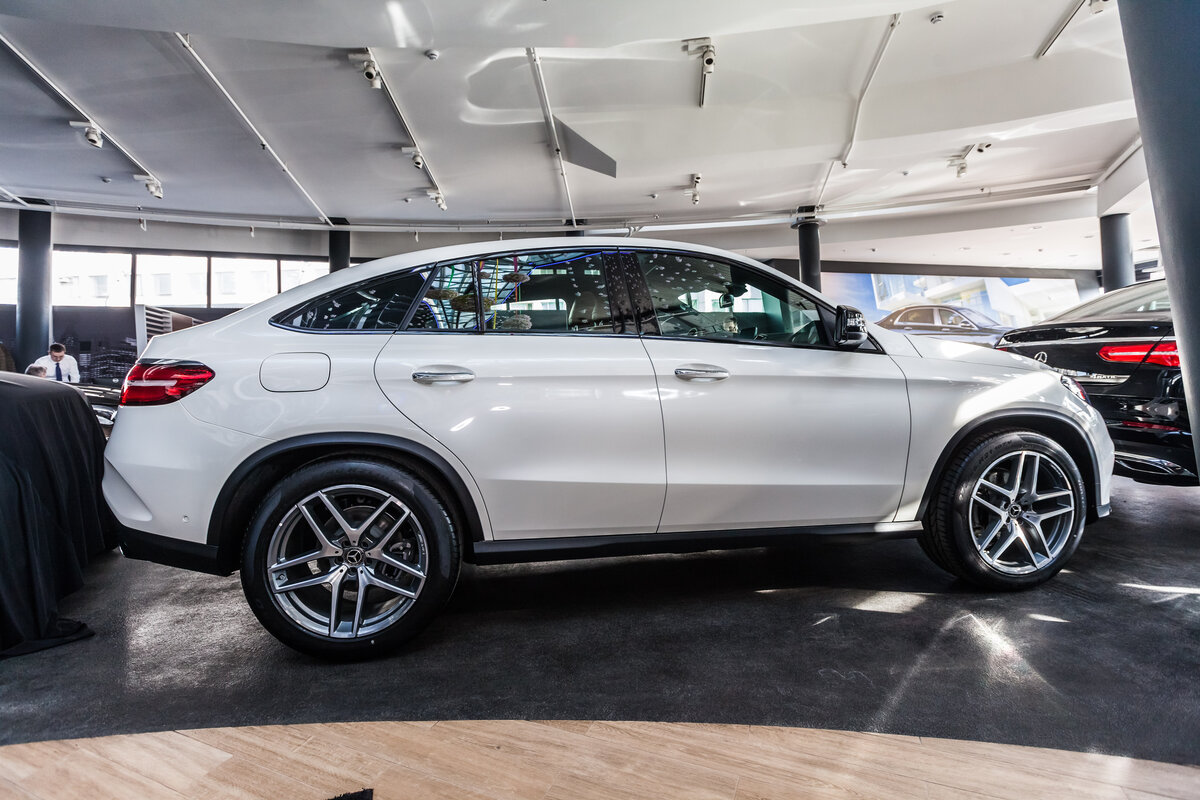 - Внедорожник Mercedes-Benz GLE 2018 имеет 19-дюйм. колеса, в то время как Mercedes-Benz AMG® GLE Coupe 2018 имеет 21-дюйм. диски