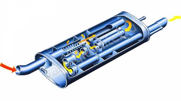 - перфорированная труба в глушителе – она позволяет рассеять через перфорацию звуковую волну;