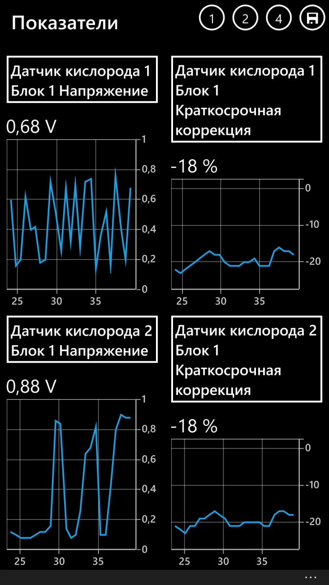 напряжение на сигнальном проводе лямбда-зонда в блоках управления