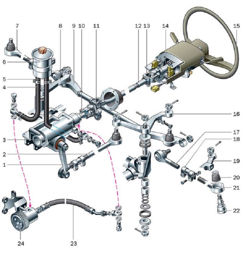 Гидравлический усилитель рулевого управления воцарился на автомобилях век назад и до сих пор не хочет сдавать позиций. Причем гидравлический усилитель сочетается как с современными реечными рулевыми механизмами, так и с более классическим рулевым редуктором с рулевой трапецией.