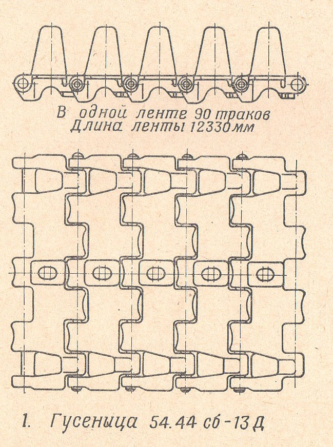 Каждая гусеница РМШ состоит из 92 звеньев 1 (рис.1), соединённых одно с другим пальцами 2. Правая и левая гусеницы взаимозаменяемы.