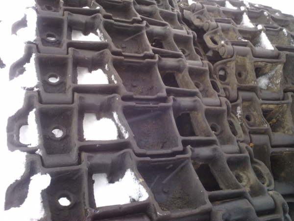 Обслуживание гусениц заключается в периодической проверке их состояния и регулировке натяжения. В случае появления трещин на подошве или проушинах звена последнее необходимо заменить, так как это может привести к аварии.