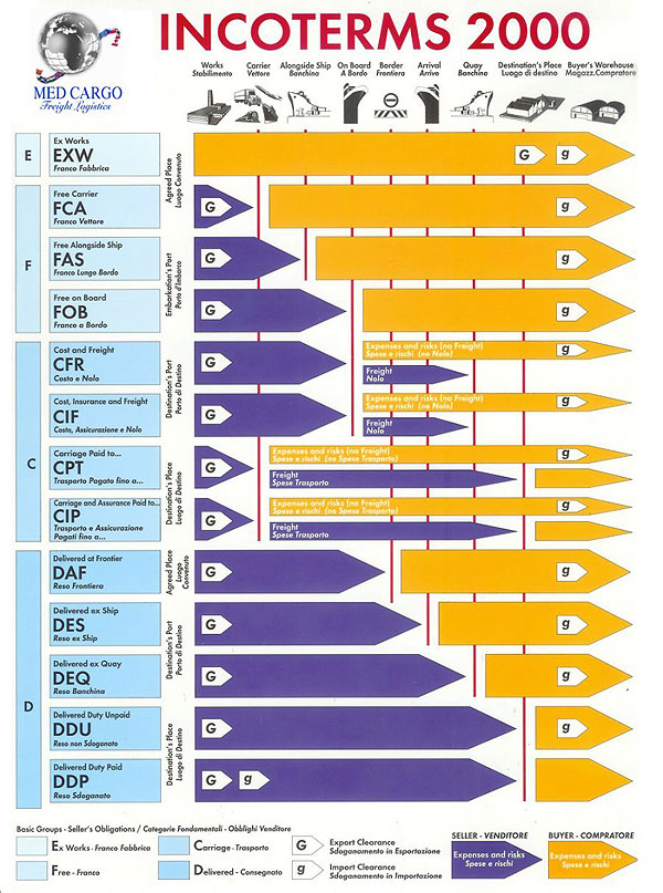 Чтобы не запутаться в этих всех условиях детализировано, кто за что отвечает при каждой из условий поставки Инкотермс, приведены в специальной таблице-шпаргалке — Правила работы с иностранцами (Инкотермс), которую вы можете скачать с сайта.