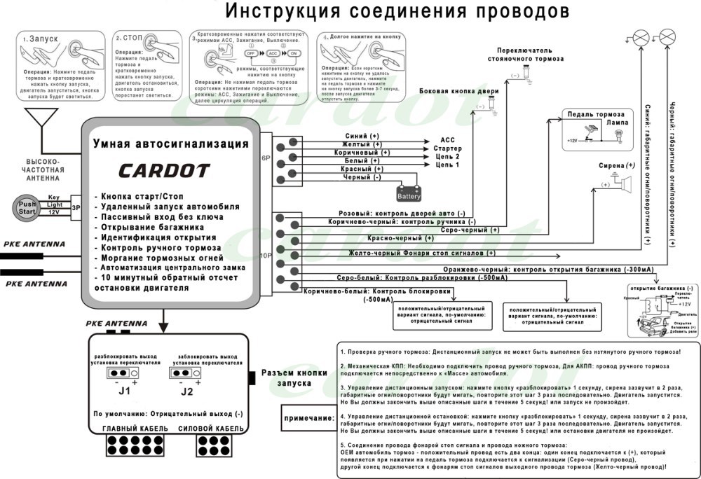 - санкционированный доступ и пуск двигателя без ключа;