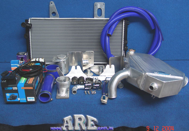 Фронтальные промежуточные охладители типа «воздух-воздух», такие как этот от Full Race (с OEM-промежуточным охладителем в задней части), действуют почти так же, как радиатор, за исключением того, что вместо охлаждения охлаждающей жидкости двигателя он охлаждает всасываемый воздух. , как только он был сжат. Установка интеркулера в передней части автомобиля обеспечивает чистую и прохладную подачу воздуха.
