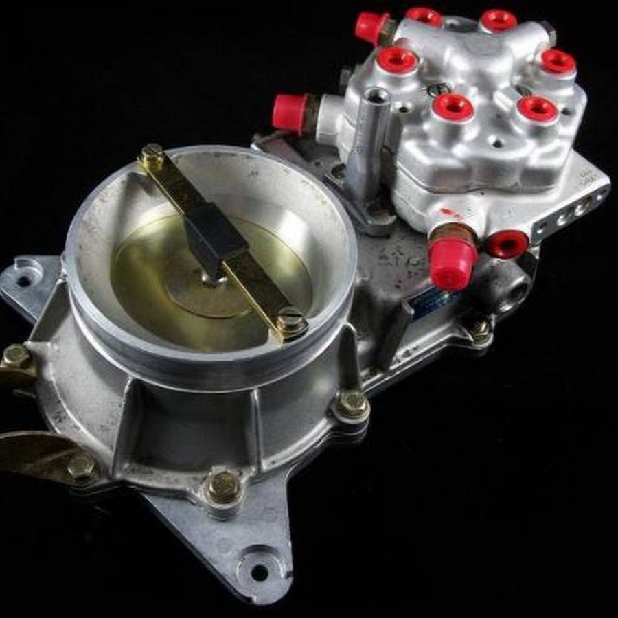 Механический впрыск. ‘K’ — от нем. «Kontinuierlich», что значитнепрерывный. This is different from pulsed injection systems, in that the fuel flows continuously from all injectors, while the fuel pump pressurises the fuel up to approximately 5 bar (72.5 psi). The air that is taken in is also weighed — to determine the amount of fuel to inject. Commonly called ‘Continuous Injection System’ (CIS) in the USA. This system has no lambda loop or lambda control. K-Jetronic debuted in the 1973.5 Porsche 911T in January 1973, and was later installed into a number of Porsche, Volkswagen, Audi, BMW, Mercedes-Benz, Rolls-Royce, Bentley, Lotus, Ferrari, Peugeot, Renault, Volvo, Saab, DeLorean and Ford automobiles. The final car to use K-Jetronic was the 1994 Porsche 911 Turbo 3.6.