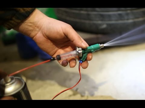 Понадобится пластиковая бутылка, которую подсоединяют к входному отверстию форсунки и к резервуару с нагнетаемой карбюраторной жидкостью. Кроме этого присоединяем два провода к клеммам форсунки . Посредством замыкания-размыкания цепи открывается-закрывается клапан, нагнетая очищающую жидкость на форсунку. Нагнетается жидкость, оставляется на некоторое время, чтобы дать ей растворить отложения, затем действие повторяется. Форсунку придется заменить, если после двух-пяти раз не появляется нужный распыл горючего.