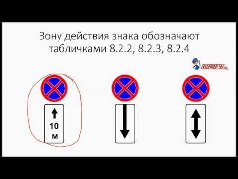 Зона влияния знака, запрещающего остановку, подчиняется таким правилам.