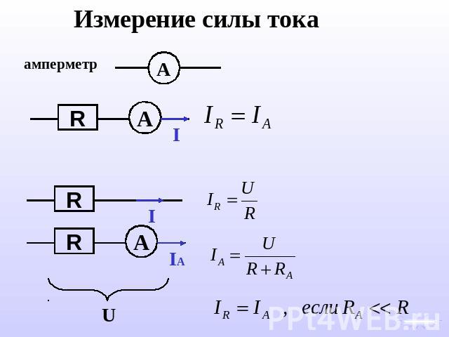 Прямое измерение тока затруднено. Обычно нецелесообразно подсчитывать отдельные электроны, поэтому два основных метода измерения тока на самом деле измеряют «побочные эффекты» тока. Первый метод использует тот факт, что движущиеся заряженные частицы создают магнитное поле (закон Ампера). Второй метод использует тот факт, что заряженные частицы, движущиеся через сопротивление, создают напряжение (закон Ома). Оба эти метода могут быть получены из уравнений Максвелла.