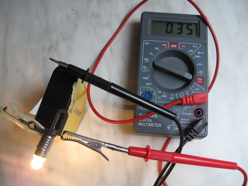 ΠΠ»Ρ ΠΈΠ·ΠΌΠ΅ΡΠ΅Π½ΠΈΡ ΡΠΎΠΊΠ° ΡΠ΅ΡΠ΅Π· Π»Π°ΠΌΠΏΠΎΡΠΊΡ ΠΌΡΠ»ΡΡΠΈΠΌΠ΅ΡΡ ΡΡΠ°Π½ΠΎΠ²ΠΈΡΡΡ ΡΠ°ΡΡΡΡ ΡΠ΅ΠΏΠΈ ΠΈ ΠΏΠ΅ΡΠ΅Π΄Π°Π΅Ρ ΡΠ»Π΅ΠΊΡΡΠΈΡΠ΅ΡΡΠ²ΠΎ ΠΎΡ Π±Π°ΡΠ°ΡΠ΅ΠΈ ΠΊ Π»Π°ΠΌΠΏΠΎΡΠΊΠ΅.ΠΠΎΠ»ΠΎΠΆΠΈΡΠ΅Π»ΡΠ½ΡΠΉ ΡΡΠΏ ΠΌΡΠ»ΡΡΠΈΠΌΠ΅ΡΡΠ° (ΠΊΡΠ°ΡΠ½ΡΠΉ) ΠΏΠΎΠ΄ΠΊΠ»ΡΡΠ°Π΅ΡΡΡ ΠΊ ΠΏΠΎΠ»ΠΎΠΆΠΈΡΠ΅Π»ΡΠ½ΠΎΠΉ ΡΡΠΎΡΠΎΠ½Π΅ Π±Π°ΡΠ°ΡΠ΅ΠΈ, Π° ΠΎΡΡΠΈΡΠ°ΡΠ΅Π»ΡΠ½ΡΠΉ ΡΡΠΏ ΠΌΡΠ»ΡΡΠΈΠΌΠ΅ΡΡΠ° (ΡΠ΅ΡΠ½ΡΠΉ) ΠΏΠΎΠ΄ΠΊΠ»ΡΡΠ°Π΅ΡΡΡ ΠΊ ΠΎΠ΄Π½ΠΎΠΌΡ ΠΏΡΠΎΠ²ΠΎΠ΄Ρ Π»Π°ΠΌΠΏΠΎΡΠΊΠΈ. ΠΠ°ΡΠ΅ΠΌ ΡΠ²ΠΎΠ±ΠΎΠ΄Π½ΡΠΉ ΠΏΡΠΎΠ²ΠΎΠ΄ Π»Π°ΠΌΠΏΠΎΡΠΊΠΈ ΠΏΠΎΠ΄ΠΊΠ»ΡΡΠ°Π΅ΡΡΡ ΠΊ ΠΎΡΡΠΈΡΠ°ΡΠ΅Π»ΡΠ½ΠΎΠΉ ΡΡΠΎΡΠΎΠ½Π΅ Π±Π°ΡΠ°ΡΠ΅ΠΈ Ρ ΠΏΠΎΠΌΠΎΡΡΡ ΠΏΡΠΎΠ²ΠΎΠ΄Π°. Π’ΠΎΠΊ Π±ΡΠ΄Π΅Ρ ΡΠ΅ΡΡ ΠΎΡ Π±Π°ΡΠ°ΡΠ΅ΠΈ ΠΊ ΠΌΡΠ»ΡΡΠΈΠΌΠ΅ΡΡΡ, Π° Π·Π°ΡΠ΅ΠΌ Π² Π»Π°ΠΌΠΏΠΎΡΠΊΡ.