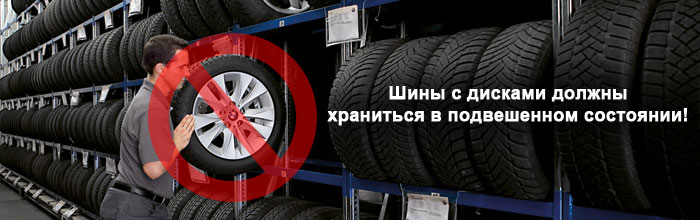 - бескамерные шины должны храниться таким образом, чтобы исключить деформацию поверхности;