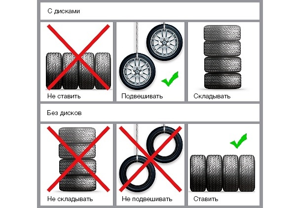 Как правильно хранить шины на дисках и без, условия хранения зимних и летних шин