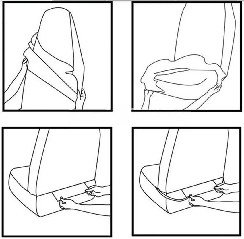Ориентируйтесь по подлокотниками ,спинке и регулировке подпорки карманов. - Разместите чехлы на кресле ровно и правильно, а потом зафиксируйте изделие сзади ремнями или резинками. При этом не оставляйте складок, расправляя чехол.