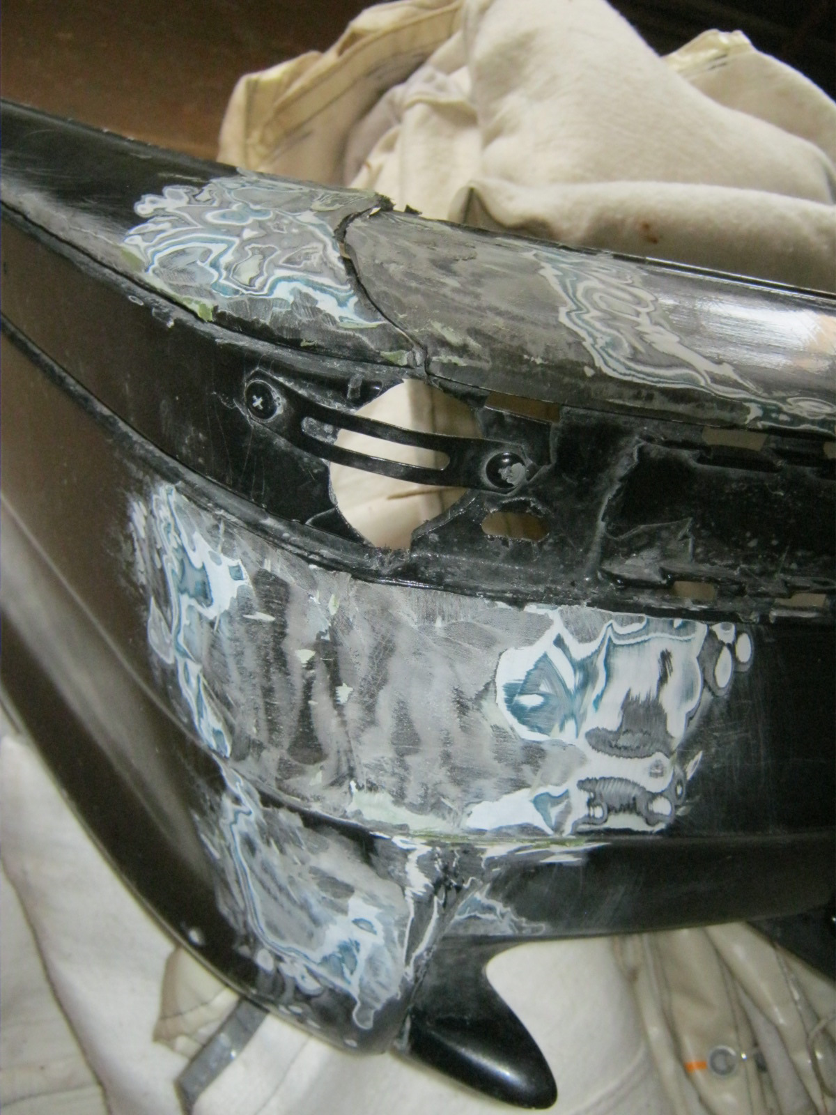 - Теперь автобампер можно зашпатлевать, прогрунтовать и приступить к восстановлению лакокрасочного покрытия.