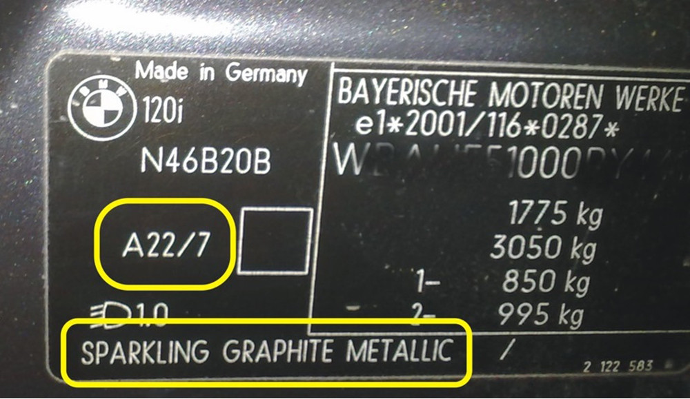 Прежде чем заказывать краску, необходимо точно определить, какой оттенок использовался при первичной покраске автомобиля. Эта информация закодирована в идентификаторе. Обнаружив табличку с пометками, необходимо обратить внимание на символы с 10 по 14. Именно они шифруют сведения о краске.
