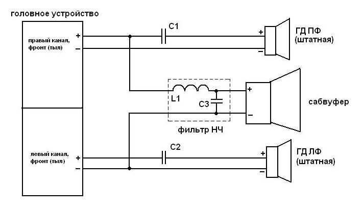 как подключить саб пасивный в машину схема — 6 авг 2014. Эта статья расскажет, какой сабвуфер выбрать в машину, какие типы автомобильных. Пассивный сабвуфер представляет собой только один. Само подключение устройств проводится по общей схеме:.