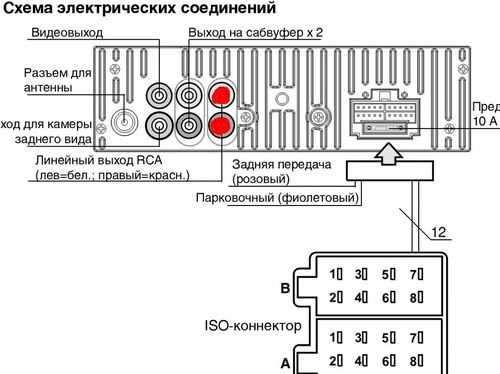 СхемаПодключение саба Mystery усилителя к магнитоле Пионер в автомобиле ВАЗ 2114