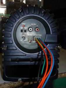 - Заводим провода через готовое тех отверстие (при необходимости делаем его самостоятельно) в багажник автомобиля. И подключаем непосредственно к низкочастотной колонке, согласно схеме (+ на +, — к -).