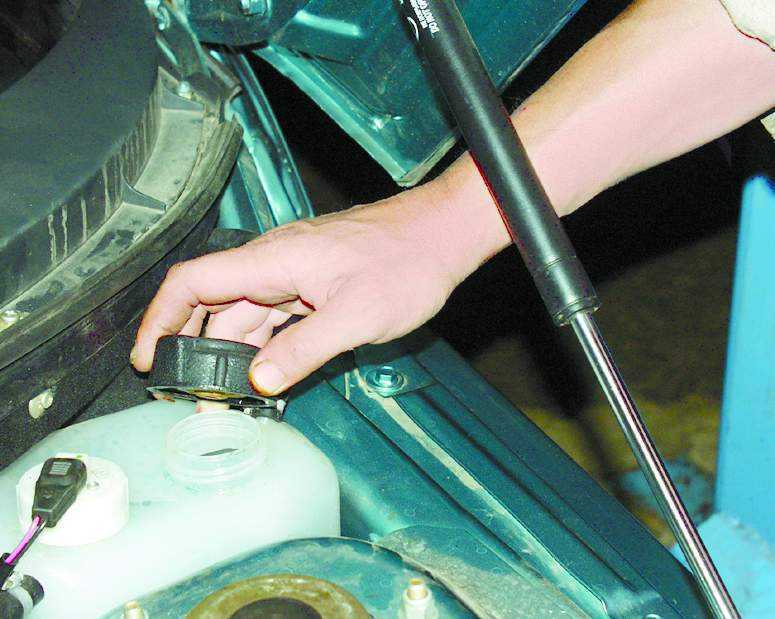 4. Открыть пробку расширительного бачка охлаждающей жидкости.
