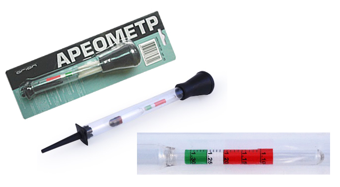 Для проверки плотности электролита в аккумуляторе необходим ареометр