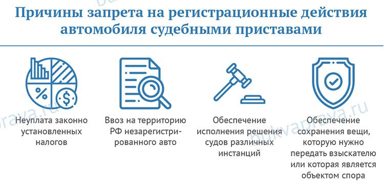 В 2008 году вышел приказ, в котором говорится «О порядке регистрации транспортных средств». Согласно нему, запрет могут наложить сотрудники: