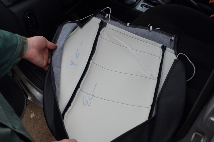 - Запомните, что чем плотнее материал соприкасается с чехлом, тем длительнее будет срок их службы. Не поленитесь снять сиденья перед тем, как натянуть чехлы, чтобы сделать это максимально качественно;