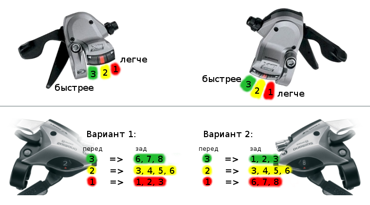 Главное правило — это по возможности плавность и последовательность в переключении передач. Переключение скоростей манетками «вверх — вниз» следует производить последовательно, давая некоторое время (хотя бы 2 — 3 секунды) для того, чтобы цепь надежно перескочила с одной звездочки на ближайшую соседнюю, и стабилизировалась.