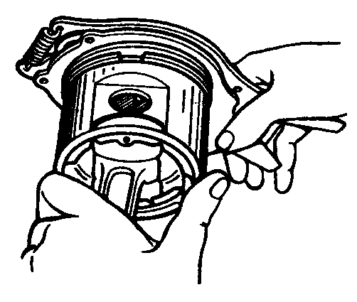 Если снятые поршни повторно устанавливаются, необходимо тщательно очистить их, особенно канавки для установки поршневых колец и отверстия для удаления масла, которые расположены в канавке поршневого кольца.