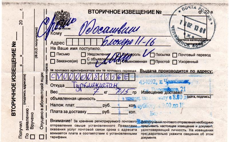 С одной стороны, спасибо им за это – такая система защищает от ошибок в отправлении и получении ценных предметов. С другой, придется потратить немного времени и уделить необходимое внимание особенностям заполнения специальной почтовой формы 22 – то есть, извещения о поступлении заказного письма, посылки, т.д.