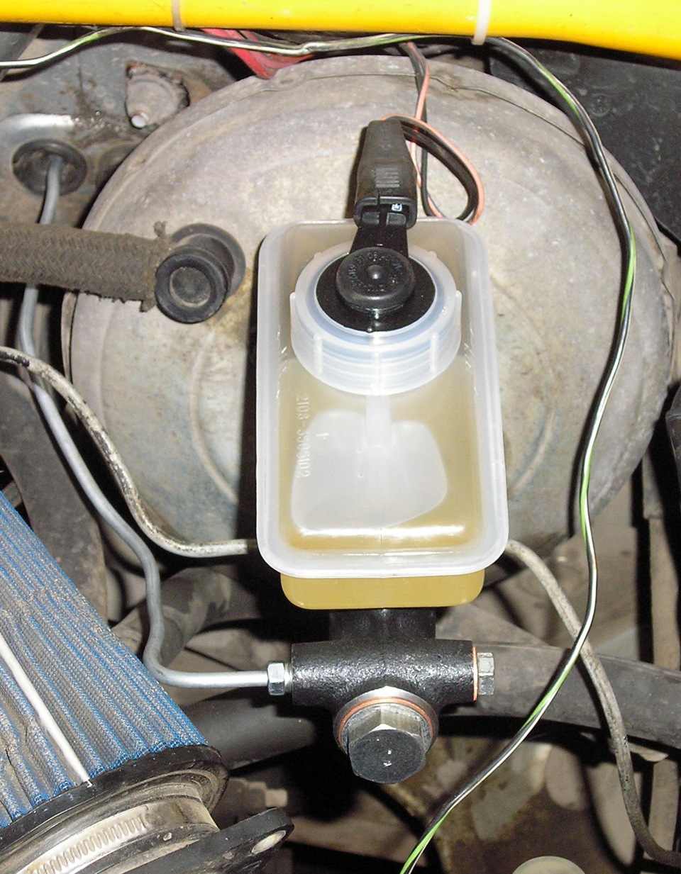 Убедитесь, что вы промыли главный цилиндр на динамометрическом стенде перед его установкой. Затем снимаем крышку бачка с главного цилиндра, установленного на переборке, и проверяем уровень жидкости.