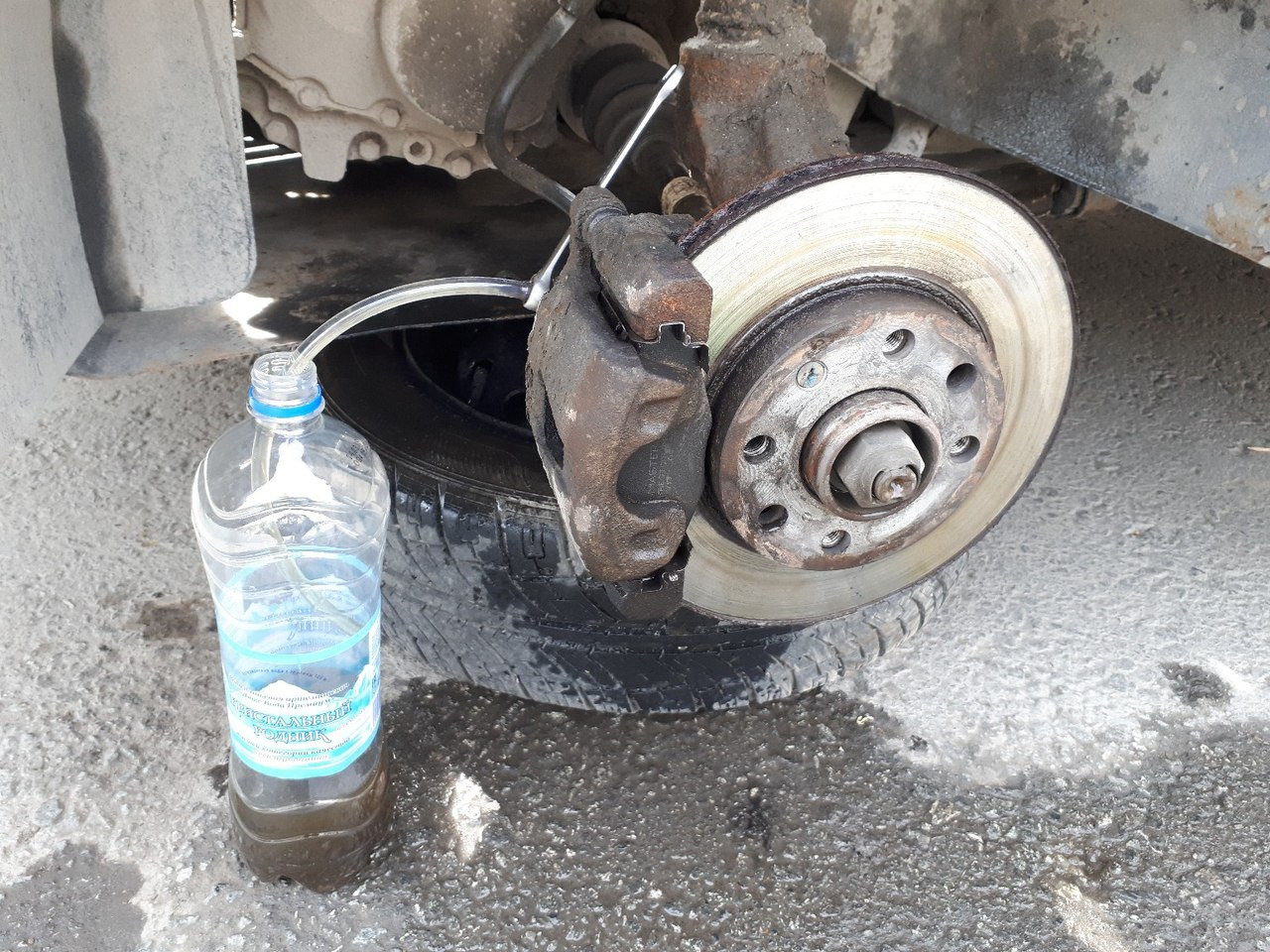 Теперь прокачиваем тормоз так, чтобы вышел весь излишний газ, растворившийся в жидкости. После этого методику дублируем на остальных колесах.