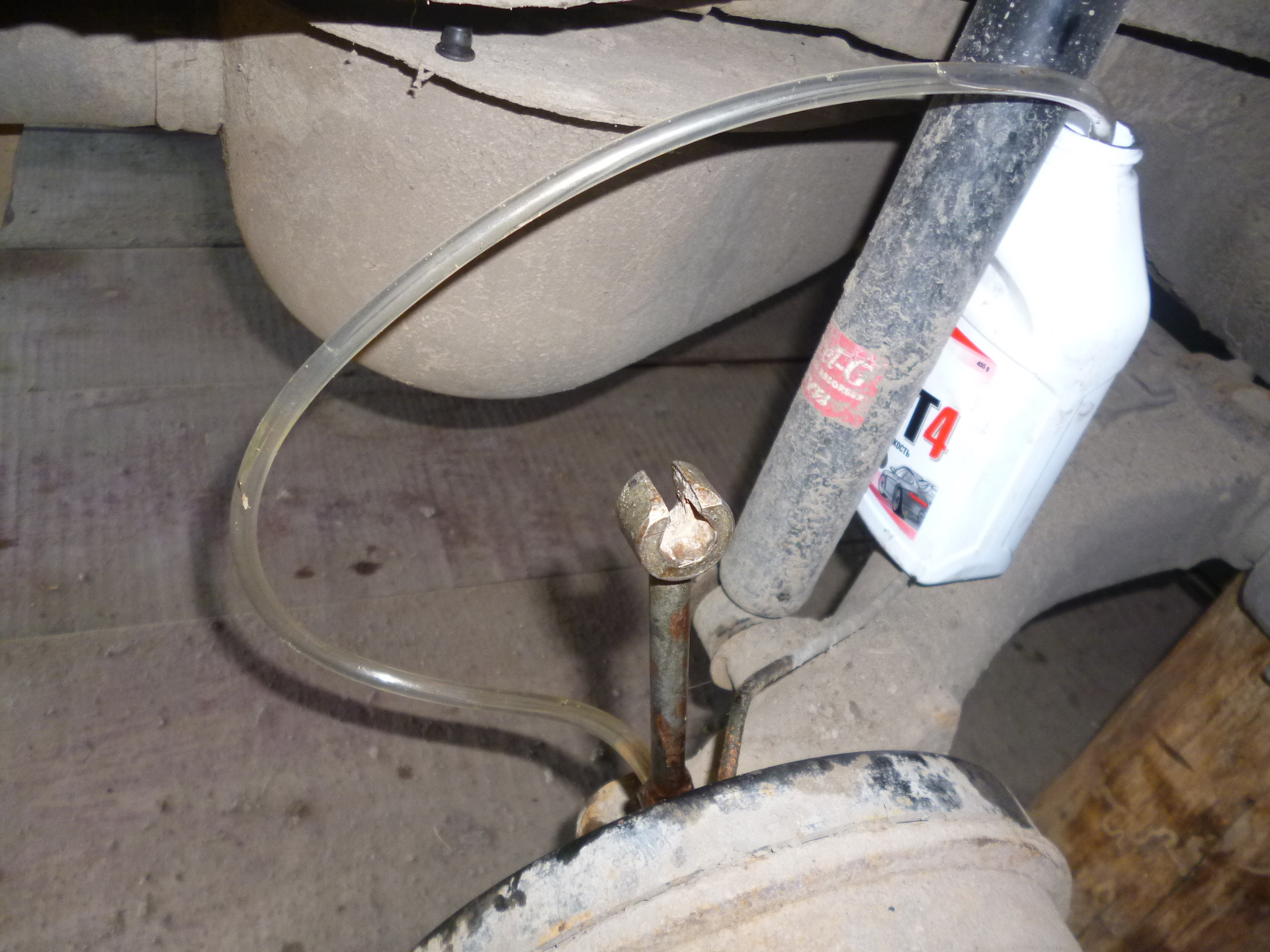 Обязательно перед началом всех работ тщательно очистите их от накопившейся грязи. После чего снимите защитный резиновый колпачок и наденьте небольшой отрезок в шланги. Идеально подойдет трубка, которая используется в системе очистки ветрового стекла. Также вам потребуется небольшая баночка, в которую налейте небольшое количество тормозной жидкости. 50-100 грамм будет вполне достаточно.