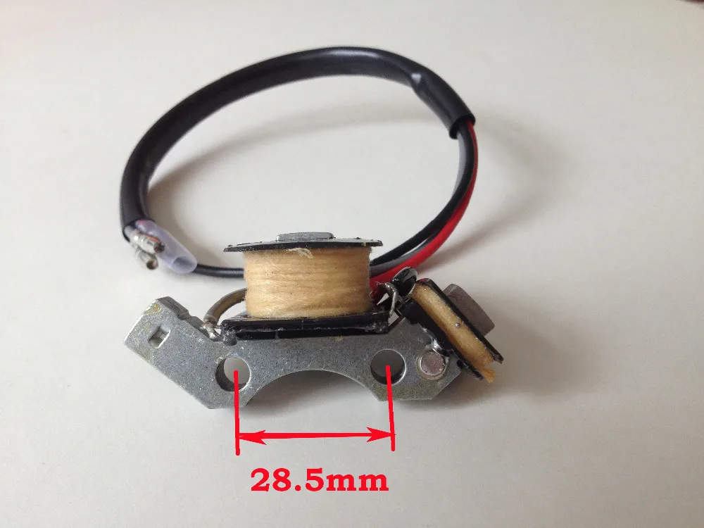 Найти катушку магнето не составит труда, так как это единственный компонент за кожухом с оголенными медными обмотками или металлическим сердечником.
