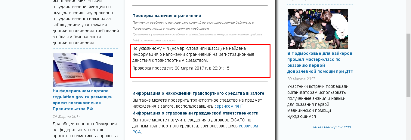 Проверка нахождения машины в розыске по российской базе Госавтоинспекции. — http://гибдд.рф