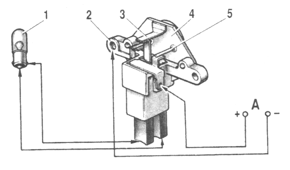 4ж. Измерить силу тока генератора при небольшой скорости вращения коленчатого вала двигателя на холостом ходу. С помощью регулировки угольного шунта добиться получения максимального тока генератора при напряжении на выводах батареи не менее 13 В. Если измеренная сила тока отличается от номинального значения не более, чем на 15 А, генератор исправен. В противном случае следует заменить генератор.