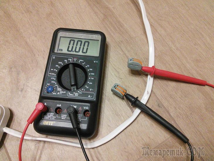 После чего суют щупы в розетку.