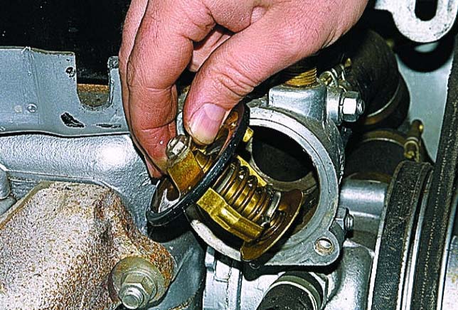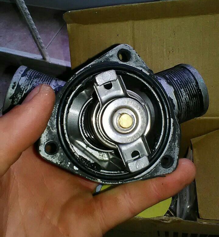 Для проверки термостата необходимо снять крышку в сборе с клапаном - Двигатель не прогревается. Снова все вопросы к клапану термостата и режимам включения вентилятора радиатора охлаждения. В этом случае клапан заклинил в открытом положении и не дает жидкости прогреться до нормы. Особенно такая проблема актуальна в холодное время года. Закоксованный клапан термостата