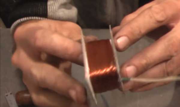 Π’Π΅ΠΏΠ΅ΡΡ Π½Π΅ΠΎΠ±Ρ ΠΎΠ΄ΠΈΠΌΠΎ Π½Π°ΠΌΠΎΡΠ°ΡΡ ΠΏΡΠΎΠ²ΠΎΠ΄ Π½Π° ΠΊΠ°ΡΡΡΠΊΠΈ. ΠΠ»Ρ ΡΡΠΎΠ³ΠΎ Π²ΠΎΡΠΏΠΎΠ»ΡΠ·ΡΠ΅ΠΌΡΡ ΡΠ°ΡΡΠ΅ΡΠΎΠΌ ΡΡΠ°Π½ΡΡΠΎΡΠΌΠ°ΡΠΎΡΠ°. Π‘Π½Π°ΡΠ°Π»Π° ΠΎΠΏΡΠ΅Π΄Π΅Π»ΡΠ΅ΠΌ ΠΏΠ»ΠΎΡΠ°Π΄Ρ ΡΠ΅ΡΠ΅Π½ΠΈΡ ΡΠ΅ΡΠ΄Π΅ΡΠ½ΠΈΠΊΠ° ΠΏΡΡΠ΅ΠΌ ΠΏΠ΅ΡΠ΅ΠΌΠ½ΠΎΠΆΠ΅Π½ΠΈΡ Π΅Π³ΠΎ Π΄Π»ΠΈΠ½Ρ ΠΈ ΡΠΈΡΠΈΠ½Ρ. Π Π½Π°ΡΠ΅ΠΌ ΡΠ»ΡΡΠ°Π΅ ΠΏΠ»ΠΎΡΠ°Π΄Ρ ΡΠΎΡΡΠ°Π²ΠΈΠ»Π° 3,7 ΡΠΌ Ρ 2,2 ΡΠΌ = 8,14 ΡΠΌ 2 . ΠΠ°Π»Π΅Π΅ Π΄Π΅Π»ΠΈΠΌ 13200/8,14=1621 Π²ΠΈΡΠΎΠΊ. ΠΡΠΎ ΠΊΠΎΠ»ΠΈΡΠ΅ΡΡΠ²ΠΎ ΠΎΠΊΡΡΠ³Π»ΡΠ΅ΠΌ Π΄ΠΎ 1700 Π²ΠΈΡΠΊΠΎΠ² ΠΈ ΠΏΠΎΡΠΎΠ²Π½Ρ ΡΠ°ΡΠΏΡΠ΅Π΄Π΅Π»ΡΠ΅ΠΌ ΠΌΠ΅ΠΆΠ΄Ρ Π΄Π²ΡΠΌΡ ΠΊΠ°ΡΡΡΠΊΠ°ΠΌΠΈ, ΠΏΠΎΠ»ΡΡΠ°Π΅ΡΡΡ ΠΏΠΎ 850 Π²ΠΈΡΠΊΠΎΠ². Π’Π°ΠΊΠΎΠ΅ ΠΊΠΎΠ»ΠΈΡΠ΅ΡΡΠ²ΠΎ ΠΌΠΎΠΆΠ½ΠΎ Π±Π΅Π· ΠΏΡΠΎΠ±Π»Π΅ΠΌ Π½Π°ΠΌΠΎΡΠ°ΡΡ Π² ΡΡΡΠ½ΠΎΠΌ ΡΠ΅ΠΆΠΈΠΌΠ΅. ΠΡΠΈ ΡΡΠΎΠΌ ΠΎΡΠΈΠ±ΠΊΠ° Π² 20-40 Π²ΠΈΡΠΊΠΎΠ² Π½Π΅ ΠΏΠΎΠ²Π»ΠΈΡΠ΅Ρ Π½Π° ΡΠ΅Π·ΡΠ»ΡΡΠ°Ρ. ΠΠΎ Π²ΡΠ΅ ΠΆΠ΅ Π»ΡΡΡΠ΅ ΠΎΡΠΈΠ±ΠΈΡΡΡΡ Π² ΡΡΠΎΡΠΎΠ½Ρ ΡΠ²Π΅Π»ΠΈΡΠ΅Π½ΠΈΡ. ΠΠ΅ΡΠ΅Π΄ Π½Π°ΡΠ°Π»ΠΎΠΌ Π½Π°ΠΌΠ°ΡΡΠ²Π°Π½ΠΈΡ Π½Π΅ΠΎΠ±Ρ ΠΎΠ΄ΠΈΠΌΠΎ ΡΠ΄Π΅Π»Π°ΡΡ ΠΎΡΠ²Π΅ΡΡΡΠΈΡ, Π² ΠΊΠΎΡΠΎΡΡΠ΅ Π±ΡΠ΄ΡΡ Π²ΡΡ ΠΎΠ΄ΠΈΡΡ ΠΊΠΎΠ½ΡΡ ΠΏΡΠΎΠ²ΠΎΠ΄Π°. ΠΠ° ΡΠ²ΠΎΠ±ΠΎΠ΄Π½ΡΠΉ ΠΊΠΎΠ½Π΅Ρ ΠΏΡΠΎΠ²ΠΎΠ΄Π° Π½Π°Π΄Π΅Π²Π°Π΅ΡΡΡ ΡΠ΅ΡΠΌΠΎΡΡΠ°Π΄ΠΎΡΠ½ΡΠΉ ΠΊΠ΅ΠΌΠ±ΡΠΈΠΊ. ΠΠΎΠ½Π΅Ρ ΠΏΡΠΎΠ²ΠΎΠ΄Π° Π²ΡΡΠ°Π²Π»ΡΠ΅ΡΡΡ Π² ΠΎΡΠ²Π΅ΡΡΡΠΈΠ΅ ΠΈ Π΄Π°Π»Π΅Π΅ ΠΈΠ΄Π΅Ρ ΠΏΡΠΎΡΠ΅ΡΡ Π½Π°ΠΌΠ°ΡΡΠ²Π°Π½ΠΈΡ. ΠΠΎ Π΅Π³ΠΎ ΠΎΠΊΠΎΠ½ΡΠ°Π½ΠΈΠΈ Π½Π° Π΄ΡΡΠ³ΠΎΠΉ ΠΊΠΎΠ½Π΅Ρ ΠΏΡΠΈΠΏΠ°ΠΈΠ²Π°Π΅ΠΌ ΠΏΡΠΎΠ²ΠΎΠ΄ΠΎΠΊ Ρ ΠΊΠ΅ΠΌΠ±ΡΠΈΠΊΠΎΠΌ ΠΈ Π²ΡΡΠ°Π²Π»ΡΠ΅ΠΌ Π² Π΄ΡΡΠ³ΠΎΠ΅ ΠΎΡΠ²Π΅ΡΡΡΠΈΠ΅. Π’ΠΎΡΠ½ΠΎ ΡΠ°ΠΊ Π½Π°ΠΌΠ°ΡΡΠ²Π°Π΅ΠΌ Π²ΡΠΎΡΡΡ ΠΊΠ°ΡΡΡΠΊΡ.