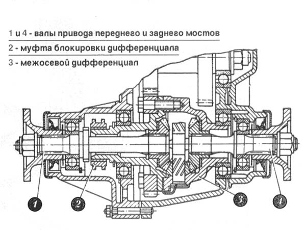 При этом именно присутствие межосевого дифференциала можно назвать главной отличительной особенностью строения раздаточной коробки, являющейся неотъемлемой частью полноприводной системы. Данный элемент необходим для обеспечения возможности вращения ведущих осей автомобиля с разными скоростями. А, для полной реализации возможностей системы, в ней существует такая функция, как блокировка межосевого дифференциала, представляющая собой самый эффективный способ улучшения проходимости автомобиля.