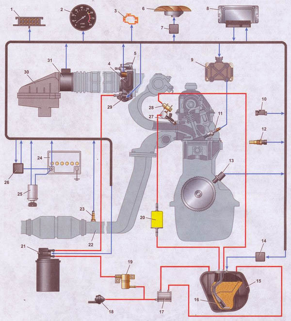 Это стало возможным благодаря развитию электроники. В этой системе топливо подается в камеру сгорания двигателя дозировано под давлением через форсунки. Такой способ подачи называют инжекторным. Основное достоинство инжекторной системы в том, что топливо расходуется экономно, а выхлопные газы менее токсичны.