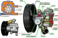 - Насос гидроусилителя с бачком для жидкости. Привод насоса обычно осуществляется приводным ремнем от шкива коленчатого вала;