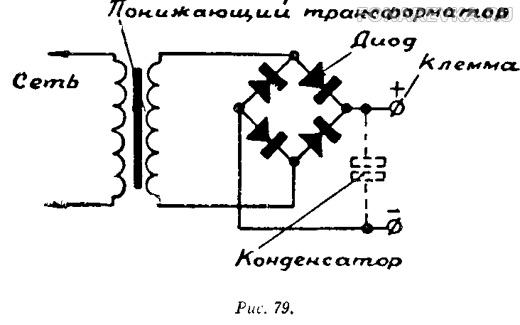 Диодный мост — специальное устройство, состоящее из диодов, которые собраны в определенной последовательности. Можно сделать своими руками, предварительно рассчитав, или же купить готовый по требуемым параметрам.