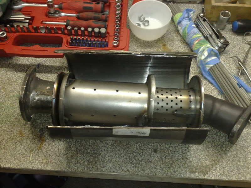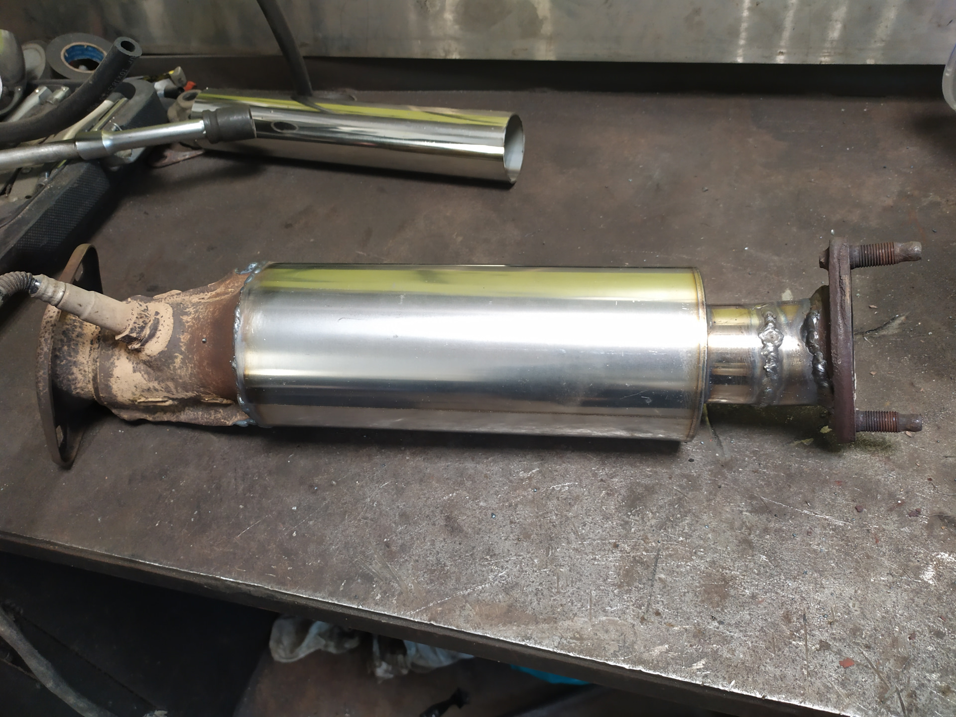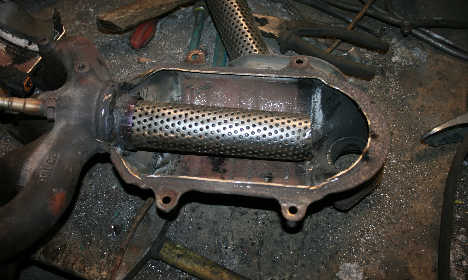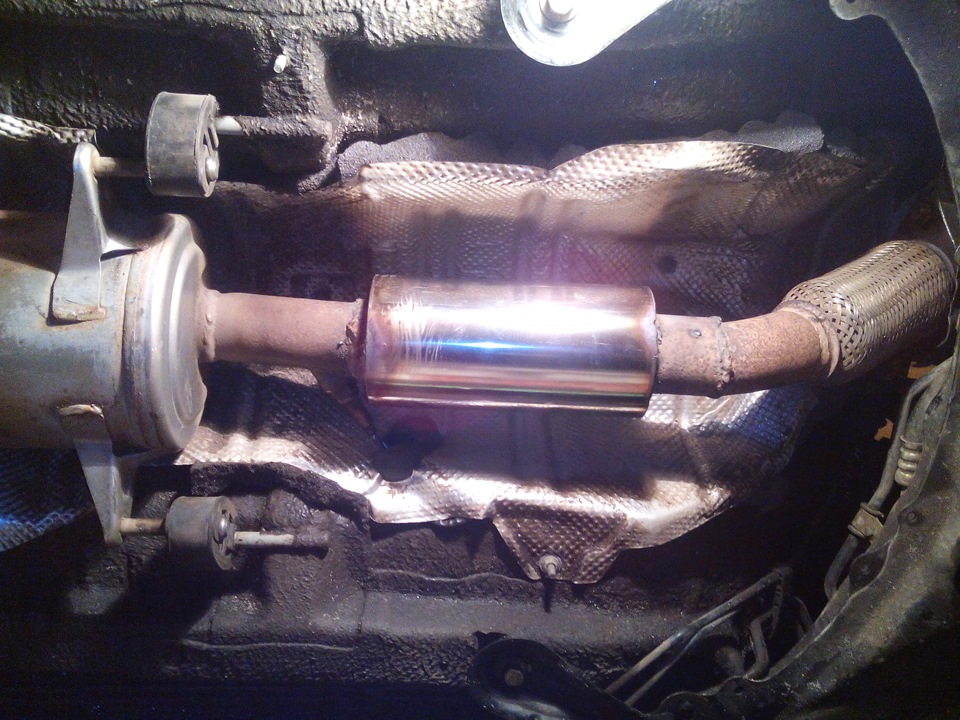 При сборке выхлопной системы вместо старого катализатора монтируется только что устроенный пламегаситель.
