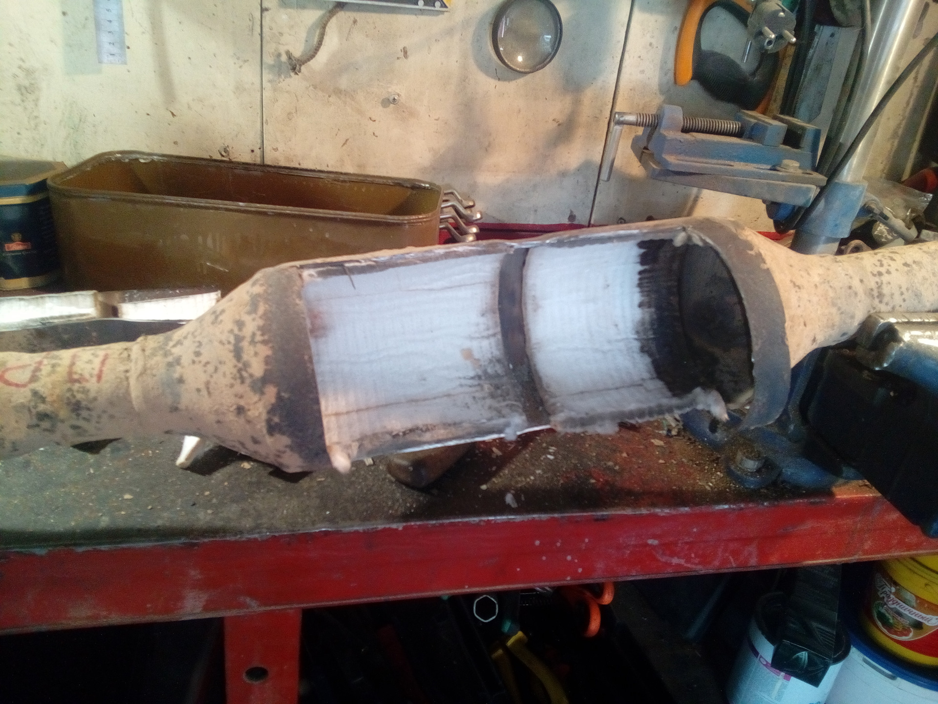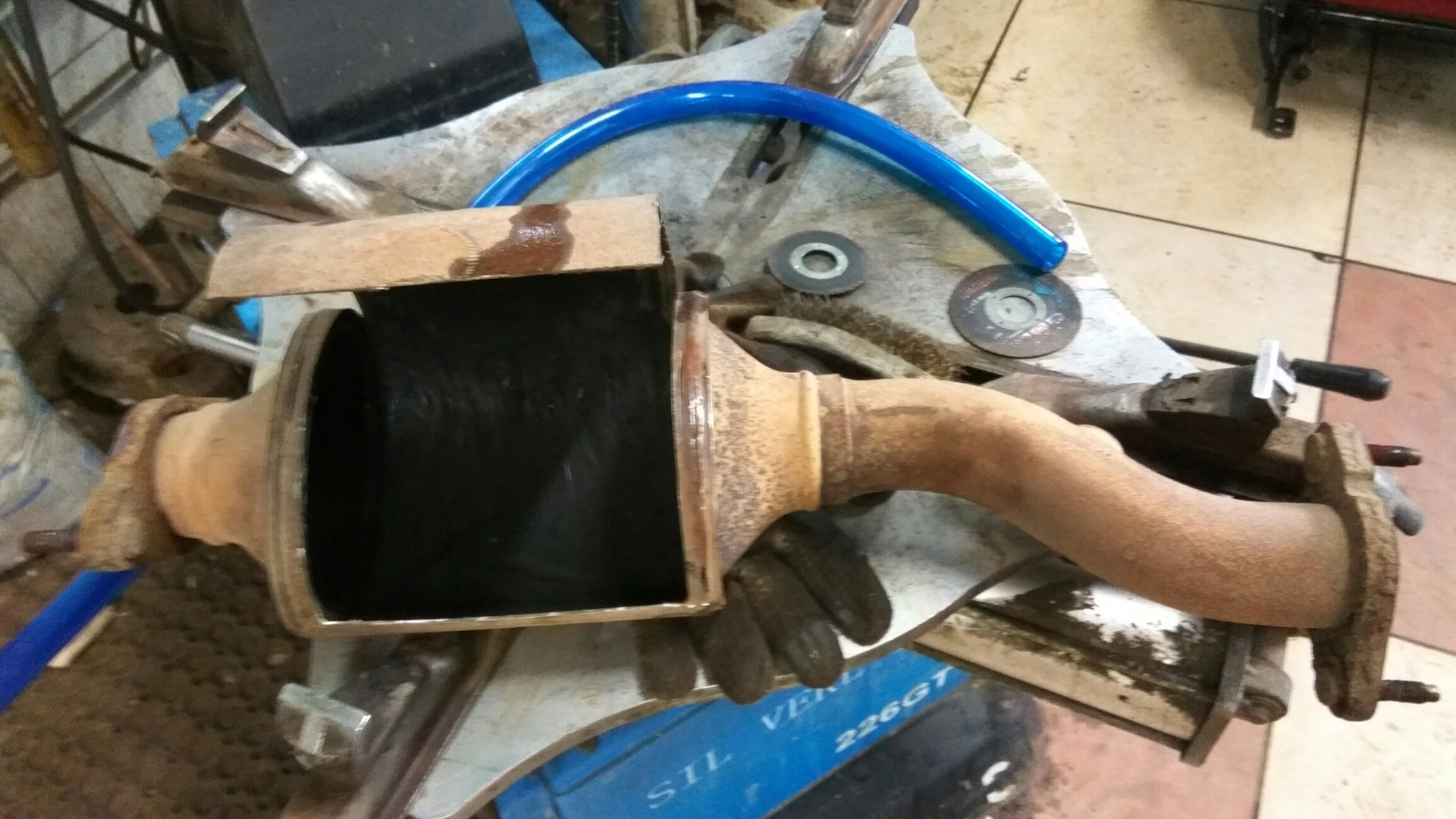 Технология довольно простая.Он заключается в удалении керамической упаковки катализатора. Для этого машину загоняют в смотровую яму, и из нее удаляют катализатор. Как удалить катализатор? Обычно он имеет стандартные крепления на болтах. Далее с помощью болгарки вырезается часть тела. Прорезь сделана так, чтобы было удобно добираться до внутренностей. Затем с помощью молотка и стамески керамический наполнитель выбивается грубым механическим способом.